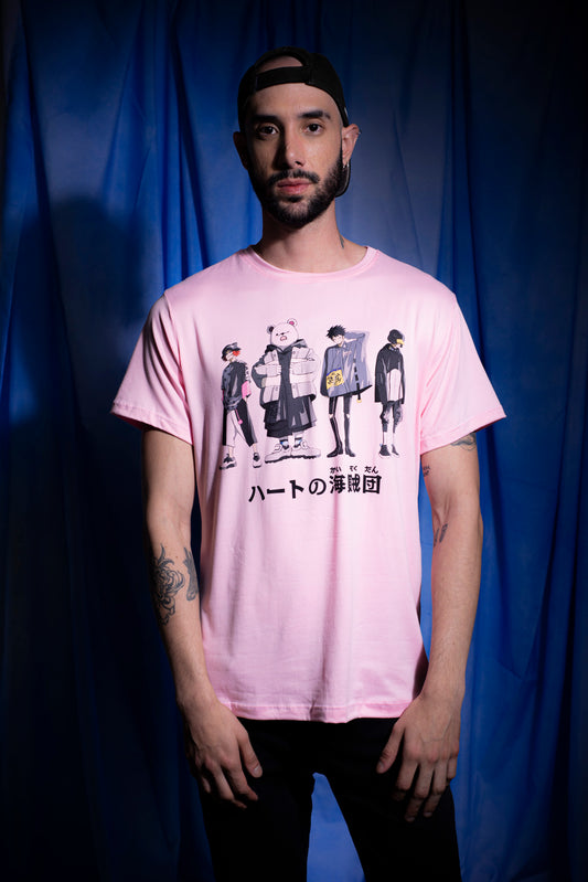 Camiseta Rosada Unisex Law piratas Corazon One Piece