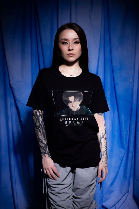 Camiseta Negra Unisex Levi Ackerman Attack On Titan
