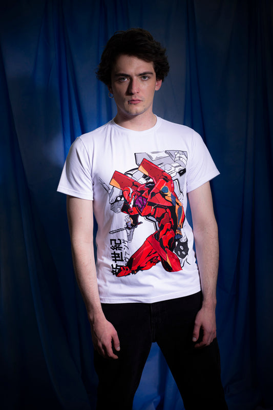 Camiseta Blanca Unisex Eva02 Production model Evangelion