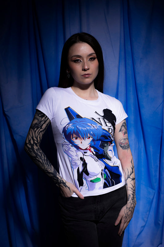 Camiseta Blanca Mujer Rei Ayanami Evangelion