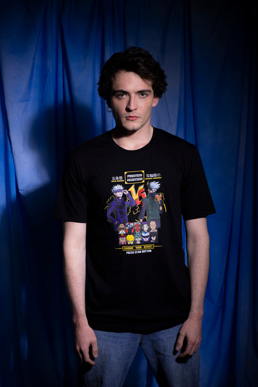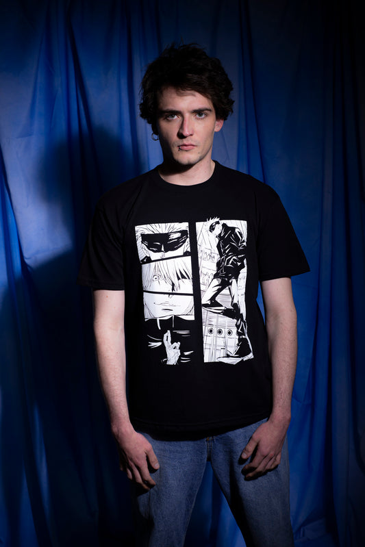 Camiseta Negra Unisex Gojo Locura Total Jujutsu Kaisen