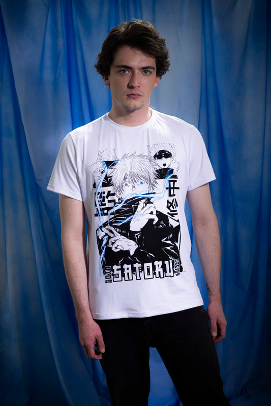 Camiseta Blanca Unisex Satoru Gojo 6 ojos Jujutsu Kaisen