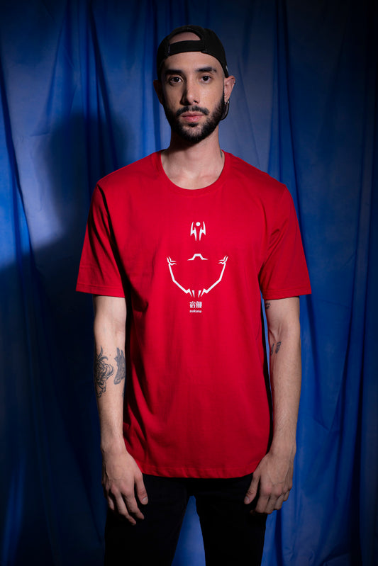 Camiseta Roja Unisex Tatuajes de Sukuna Jujutsu Kaisen