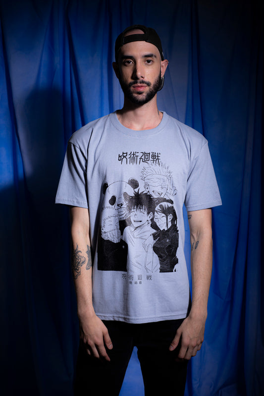 Camiseta Blanca Unisex Gojo y primer año Jujutsu Kaisen