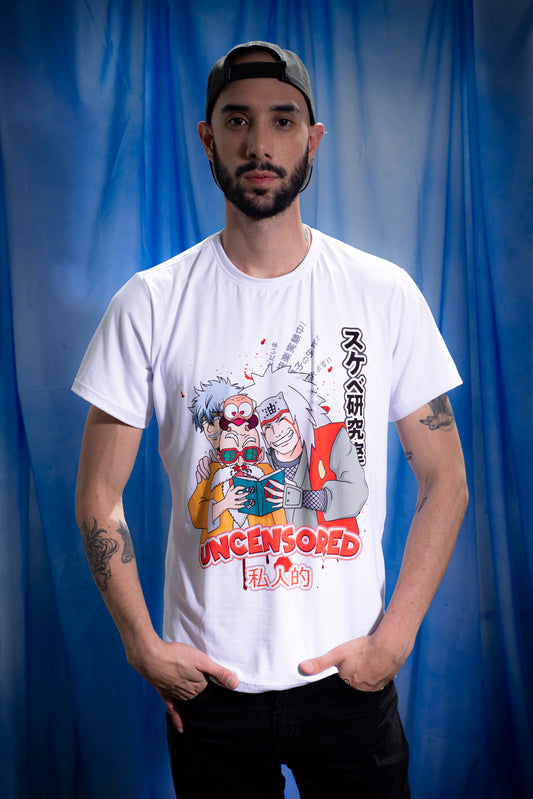 Camiseta Blanca Unisex Naruto y Jiraiya Naruto Shippuden