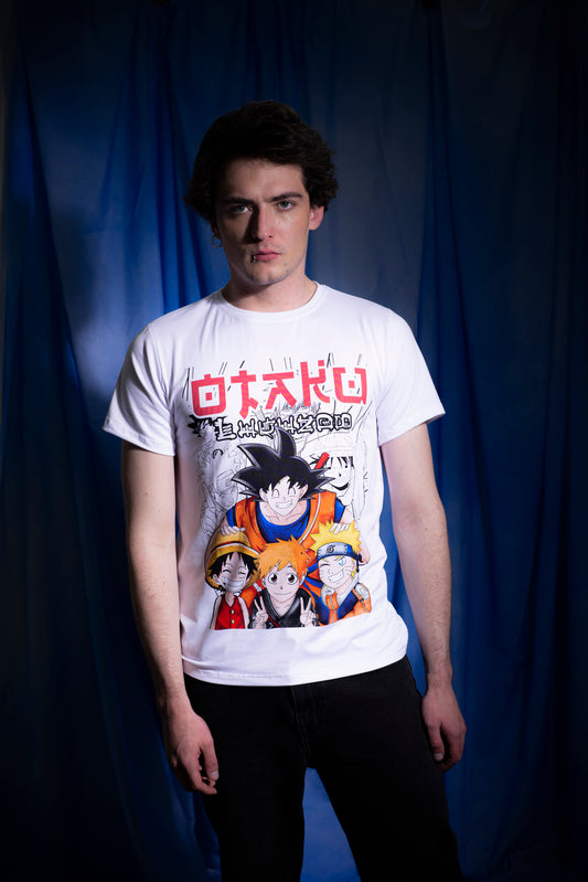 Camiseta Negra Unisex Lucha Maestros del Anime