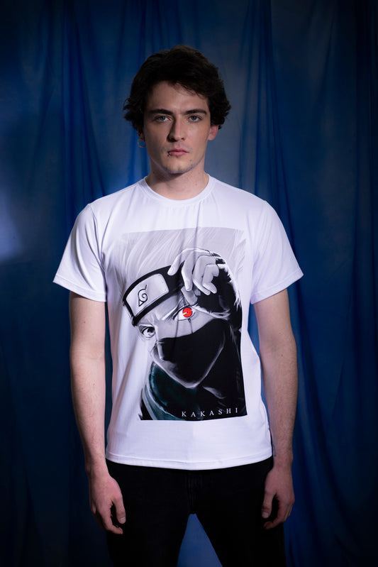 Camiseta Blanca Unisex Kakashi Sharingan Naruto