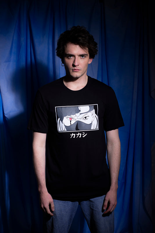 Camiseta Negra Unisex Kakashi Revela el Sharingan Naruto