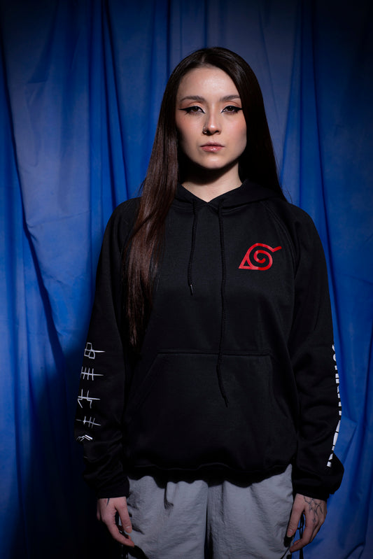 Hoodie Negro Unisex Aldea Oculta de la Hoja Naruto Shippuden