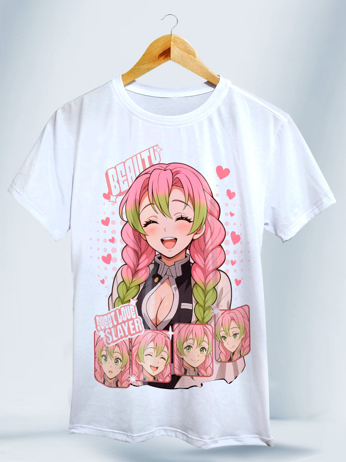 Camiseta Blanca Unisex Mitsuri Dulzura Kawaii Demon Slayer