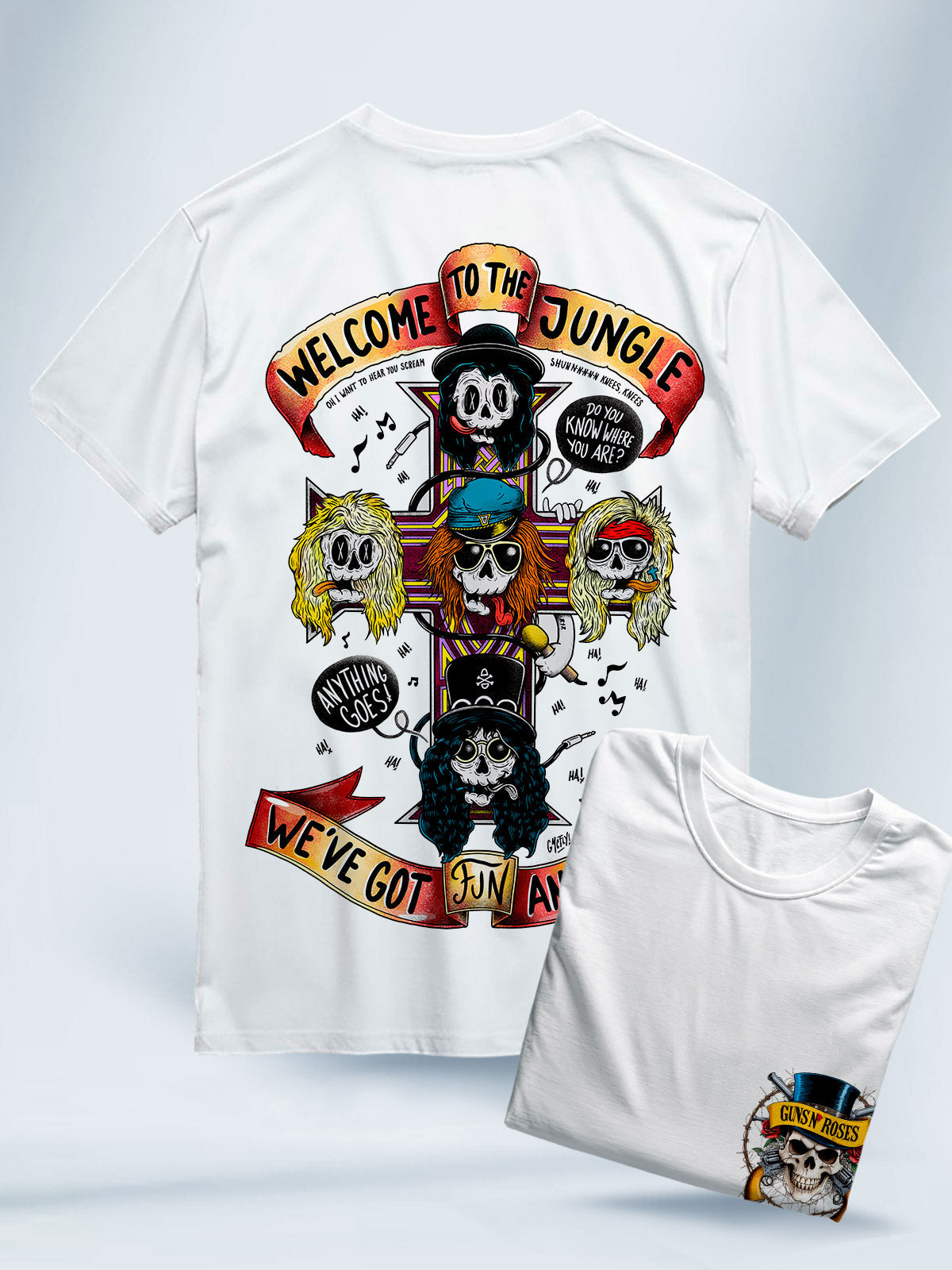 Camiseta Blanca Unisex Welcome to the Jungle Guns and Roses