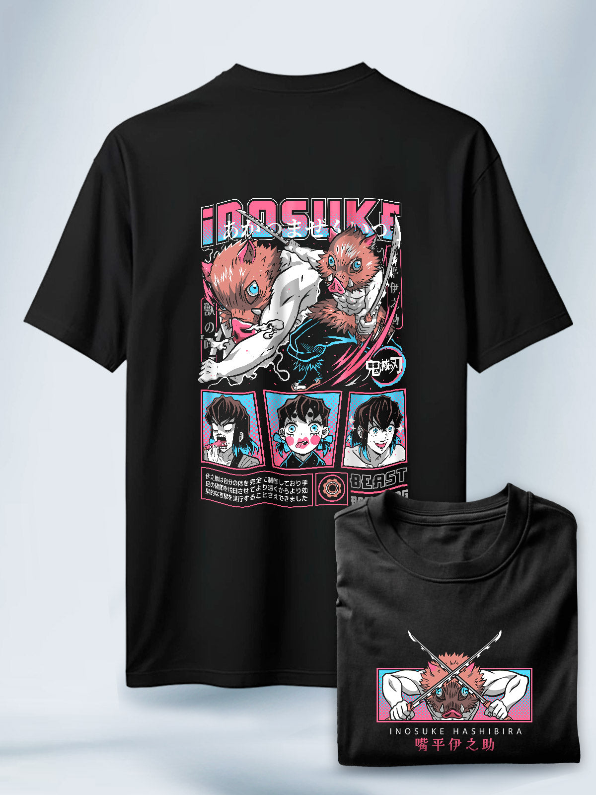 Camiseta Negra Unisex Inosuke Bestia Salvaje Demon Slayer