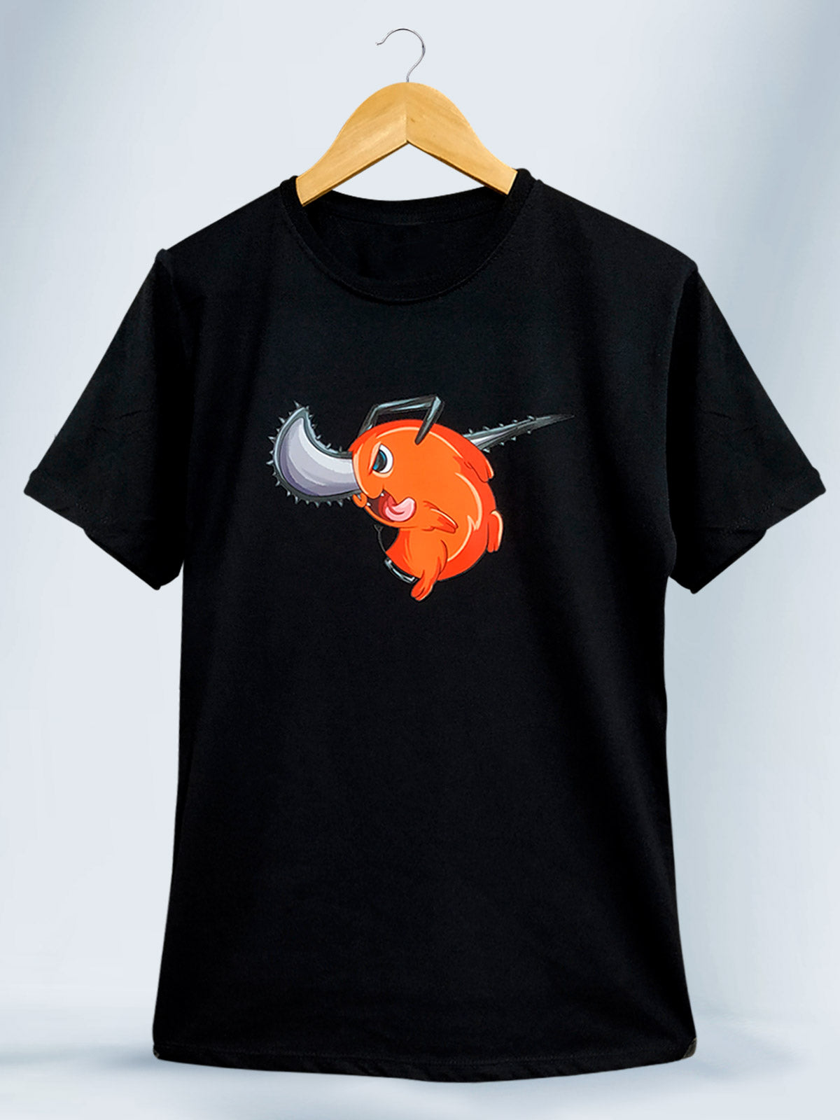 Camiseta Negra Unisex Pochita Salto Dinámico Chainsaw Man