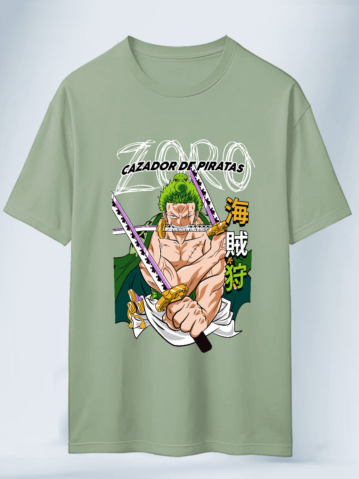 Camiseta Verde Claro Unisex Zoro Cazador de Piratas One Piece